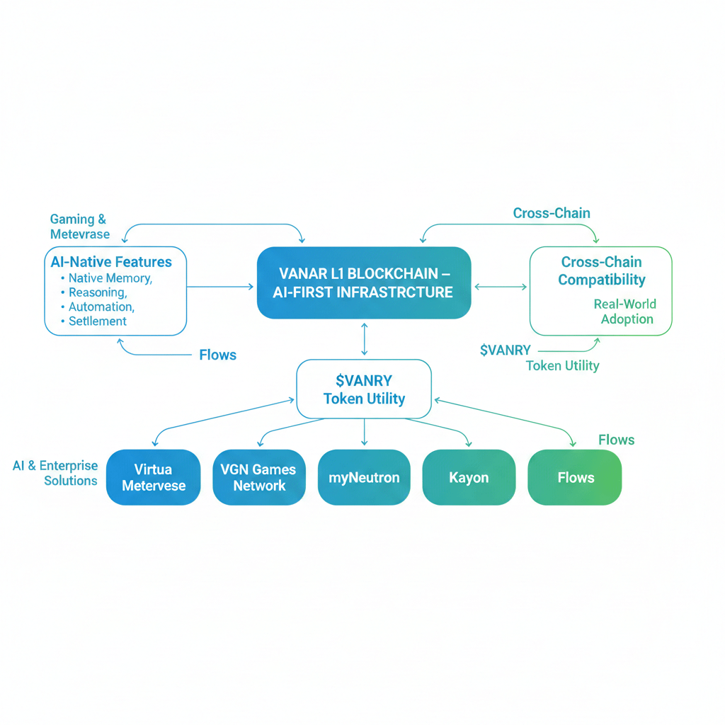 En el núcleo de este ecosistema se encuentra el $VANRY token, que se alinea directamente con el diseño nativo de IA de la infraestructura. En lugar de servir como un activo especulativo, $VANRY permite la participación en el ecosistema de Vanar, impulsando transacciones, liquidaciones e interacciones dentro de aplicaciones impulsadas por IA. Al integrar la utilidad del token con productos en vivo y uso real, Vanar asegura que $VANRY refleje la adopción y actividad reales, no solo narrativas o el bombo del mercado.