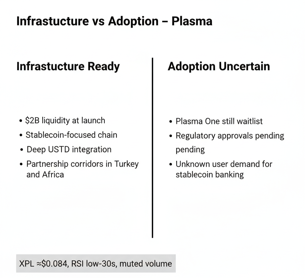 Plasma’s infrastructure is built, but adoption is the question the market hasn’t answered yet.