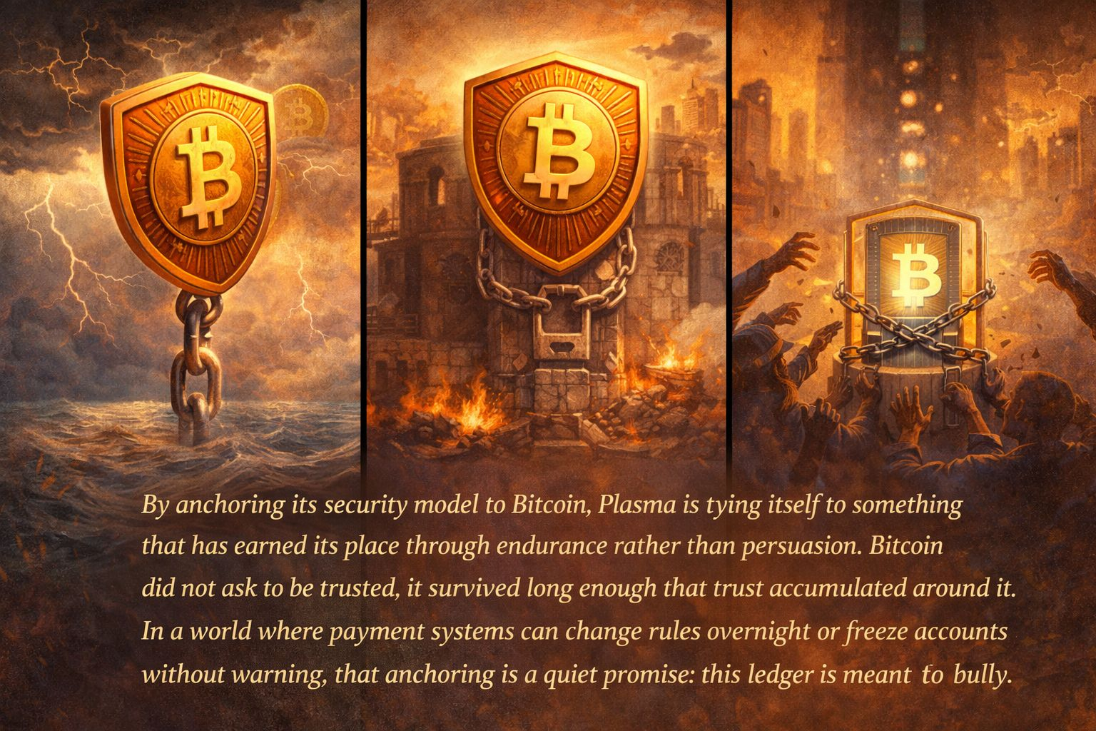 By anchoring its security model to Bitcoin, Plasma is tying itself to something that has earned its place through endurance rather than persuasion. Bitcoin did not ask to be trusted; it survived long enough that trust accumulated around it. In a world where payment systems can change rules overnight or freeze accounts without warning, that anchoring is a quiet promise: this ledger is meant to be hard to bully. Hard to rewrite. Hard to quietly capture.