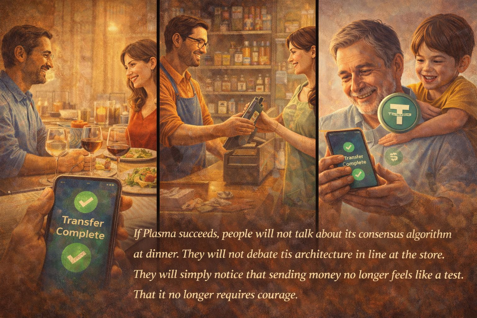 If Plasma succeeds, people will not talk about its consensus algorithm at dinner. They will not debate its architecture in line at the store. They will simply notice that sending money no longer feels like a test. That it no longer requires courage.