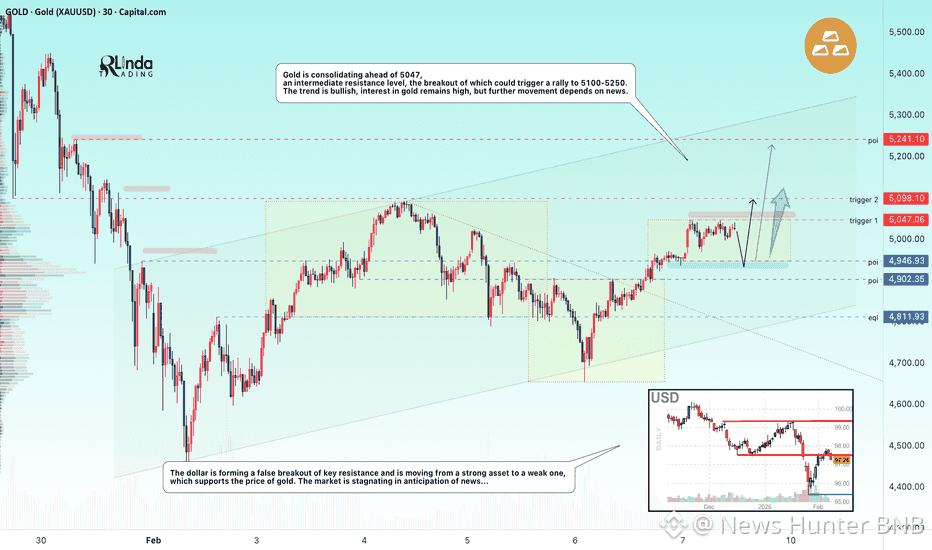 تقنيًا، الذهب في اتجاه صعودي، ولكن قبل الارتفاع، قد يختبر المستويات الدعم التالية: 4985، 4902 (ضغط طويل حاد).