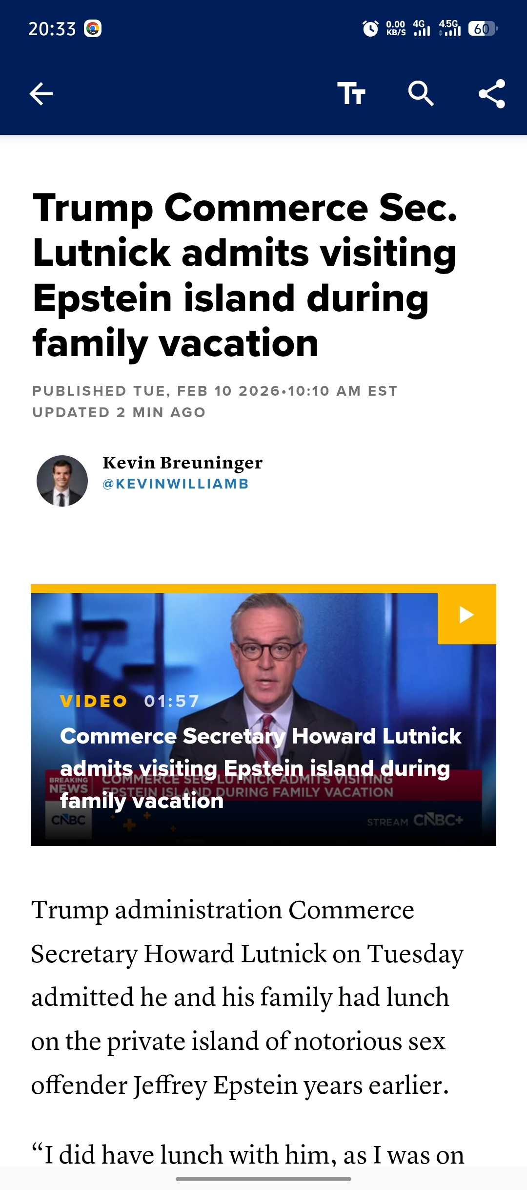 Trump administration Commerce Secretary Howard Lutnick on Tuesday admitted he and his family had lunch on the private island of notorious sex offender Jeffrey Epstein years earlier.