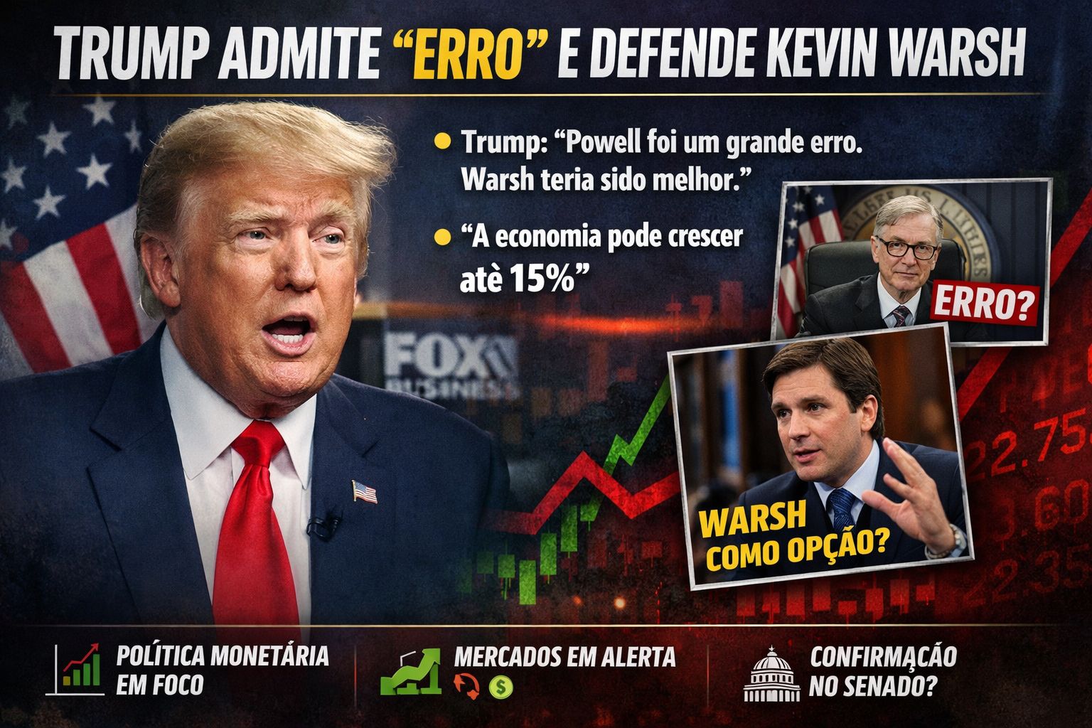 Él afirmó que la economía podría crecer “hasta 15% o más” con Warsh, incluso si esto es visto como altamente optimista por los especialistas.