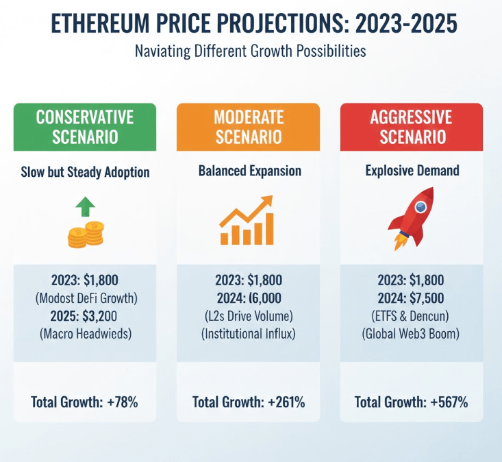 Muchos analistas estiman que ETH podría alcanzar entre $5,200 y $7,200 para 2026, dependiendo del crecimiento y las condiciones macroeconómicas.