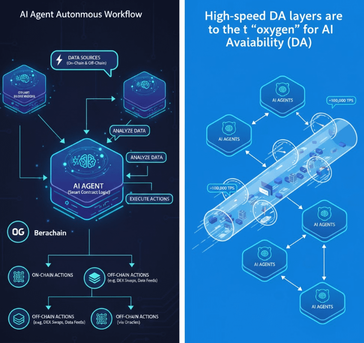 Motores de Razonamiento Descentralizados: Imagina contratos inteligentes que pueden realizar "inferencia" – lo que significa que pueden tomar decisiones y hacer predicciones impulsadas por IA directamente en la cadena, sin depender de servicios oráculo centralizados externos para cada punto de datos. Proyectos como 0G (ZeroGravity) e incluso actualizaciones recientes de cadenas como Berachain están habilitando esto. Permiten que tareas complejas de aprendizaje automático sean verificadas por la propia red. Esto significa que un agente de IA puede, por ejemplo, analizar el sentimiento del mercado y ejecutar una operación basada en su modelo interno, todo dentro del entorno sin confianza de la blockchain.