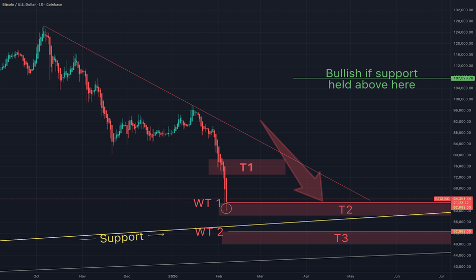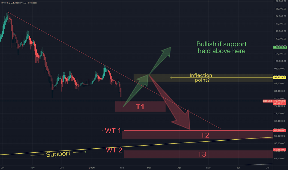 Una vez que se tocó el mínimo de $80K (T1), sugerí (el 31 de enero) que el siguiente objetivo bajista se alcanzaría en $60K (+/-2K).