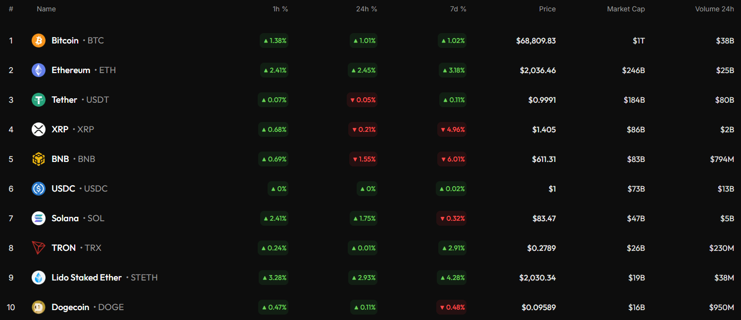 En el último día laborable de la semana, el mercado está principalmente en alza, según CoinStats.