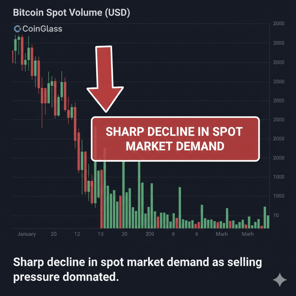 Los datos del mercado al contado también apoyan esto. Según CoinGlass, la demanda cayó drásticamente de $1.02 mil millones a $89.73 millones el 12 de febrero, con la venta neta dominando.