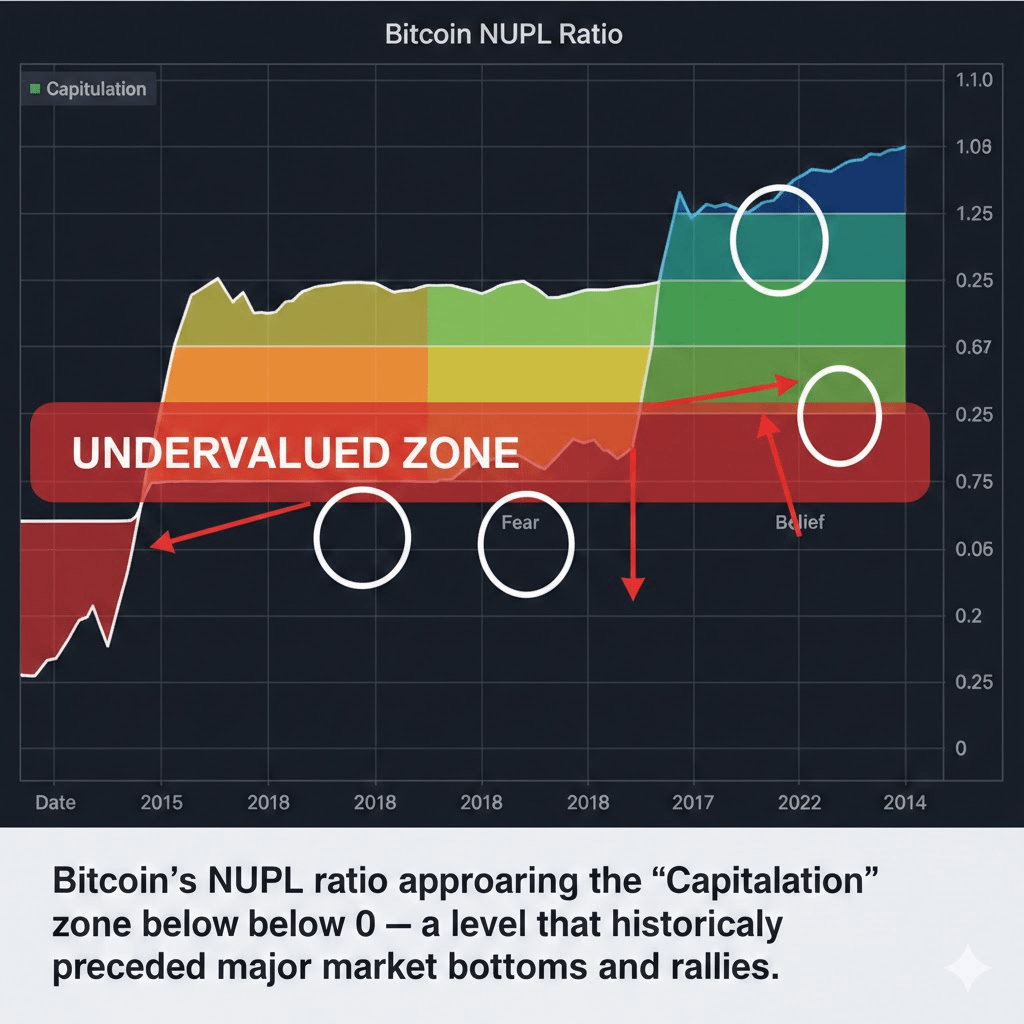 En lugar de ver esta fase como puramente destructiva, los datos en la cadena sugieren que podría ser un reinicio del mercado del tipo que históricamente llega antes de grandes recuperaciones.