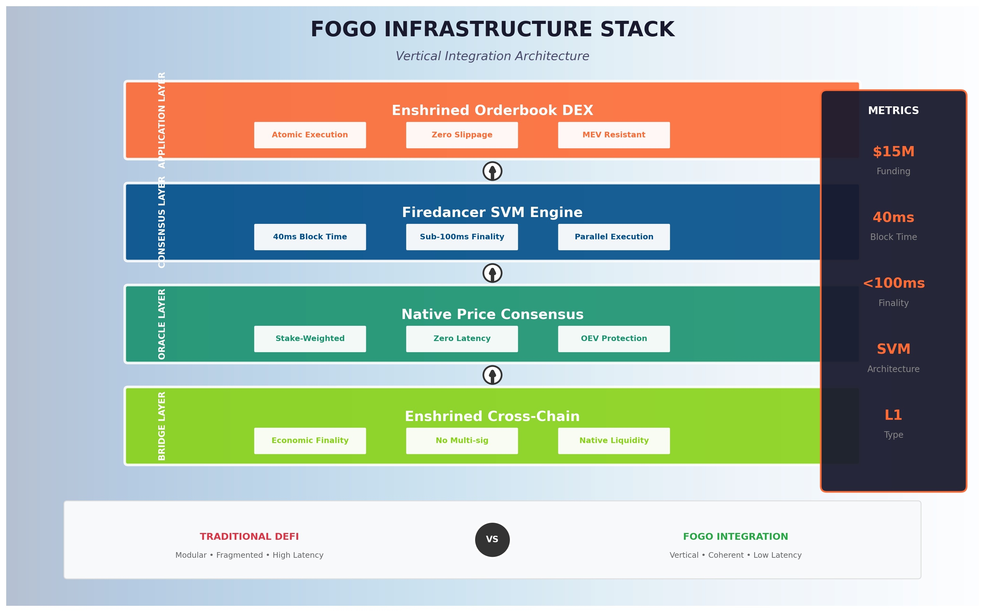 As shown in the diagram, Fogo collapses four critical layers into a coherent stack: