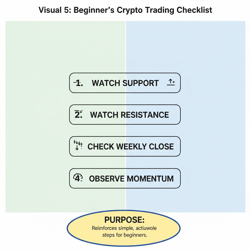 💡 Consejo Pro para Principiantes: Mantenlo visual. Dibuja líneas de soporte y resistencia en tus gráficos, anota los cierres semanales e imagina los dos posibles caminos hacia adelante. Con el tiempo, este hábito puede darte una sensación mucho más clara de la psicología del mercado y el momento, incluso si apenas estás comenzando.