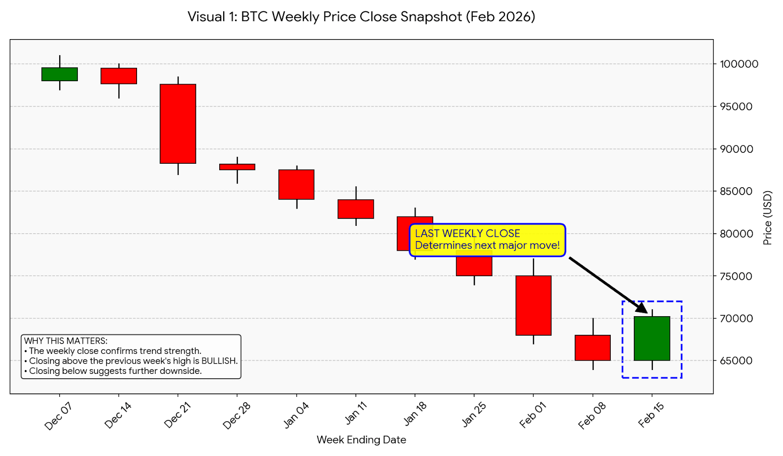 El cierre semanal es más que solo otro punto de precio, es una instantánea del sentimiento del mercado. Piénsalo como un “informe de calificaciones” para compradores y vendedores: