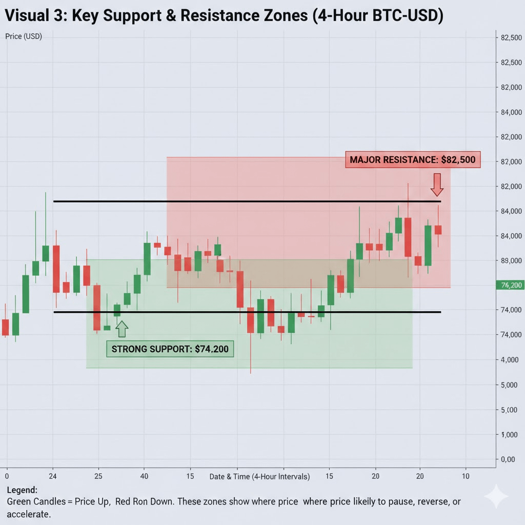 Soporte: $74,200 – Este piso es crucial. Caer por debajo de él podría indicar una confianza debilitada, lo que podría provocar un retroceso y retrasar el impulso del primer trimestre.