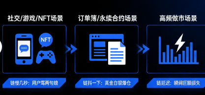 Hacer redes sociales, hacer juegos, hacer NFT, si la cadena se retrasa unos segundos, los usuarios pueden quejarse un poco, pero lo toleran.