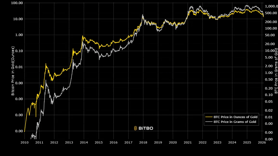 Gráfico de Precio y Ratio BTC vs Oro. Fuente: Bitbo
