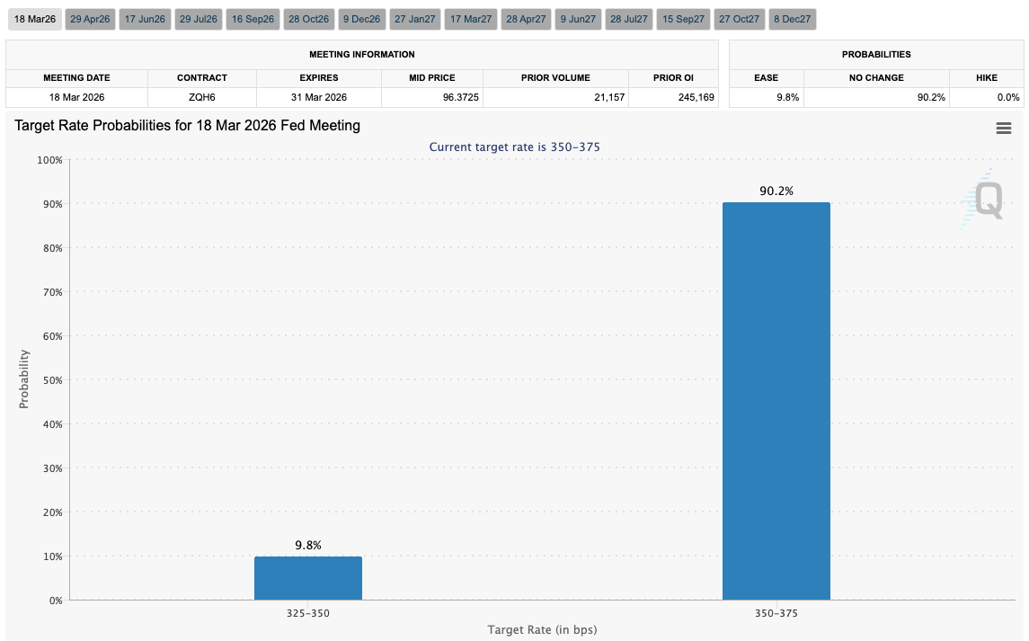 Probabilidades de tasa objetivo de la Fed para la reunión del FOMC de marzo (captura de pantalla). Fuente: CME Group