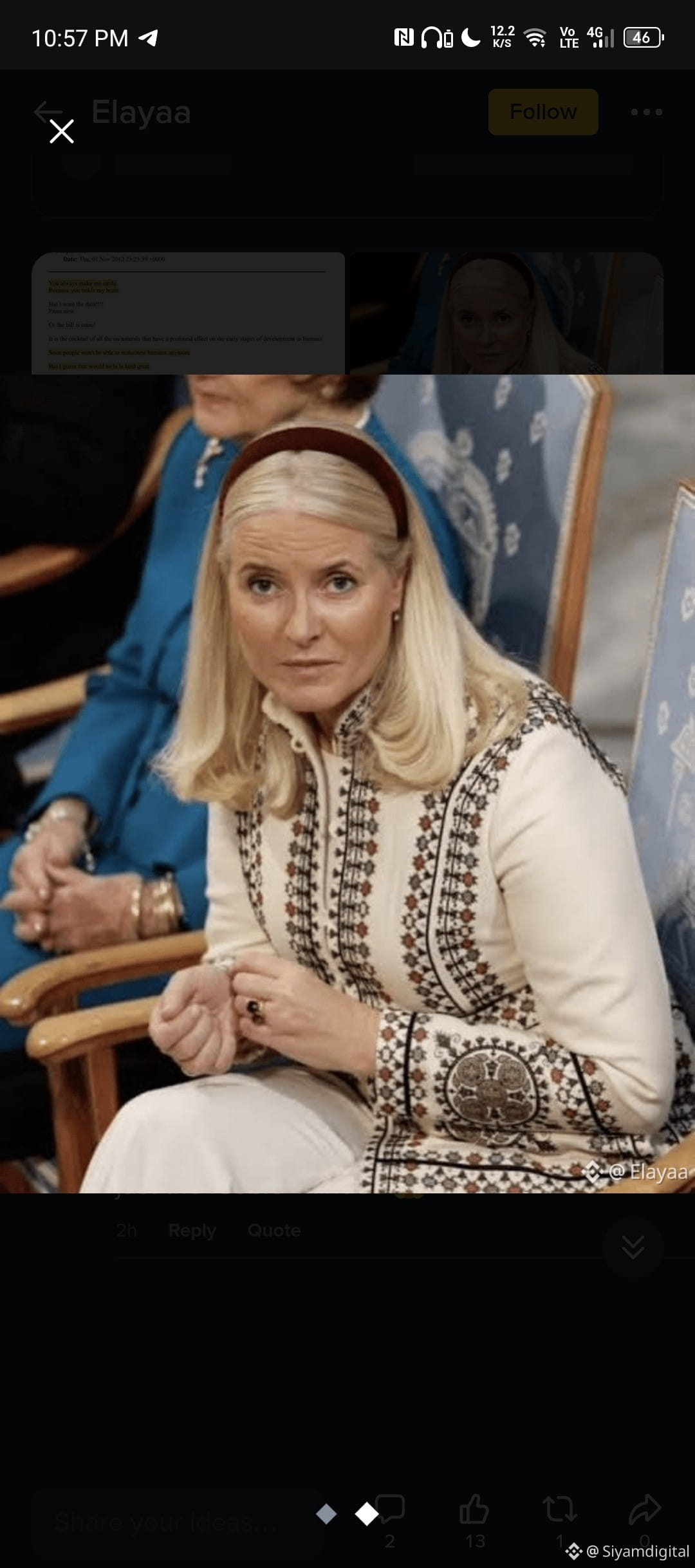 In Jeffrey Epstein’s documents, a note from Princess Mette-Marit of Norway from November 2012 reportedly states: