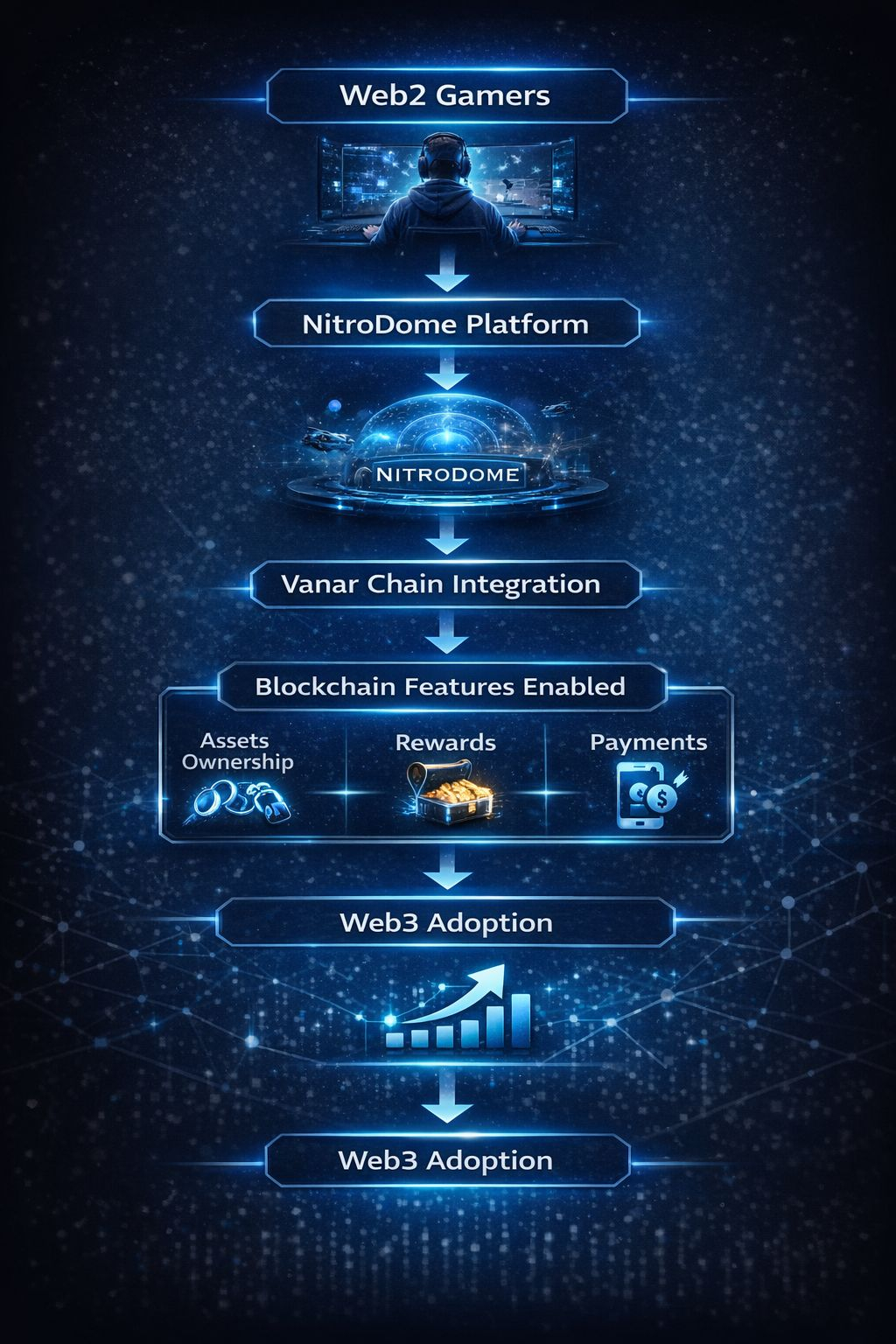 By integrating with NitroDome, Vanar Chain aims to bridge the gap between Web2 and Web3, enabling traditional gamers to seamlessly transition into blockchain-powered gaming without facing technical barriers.
