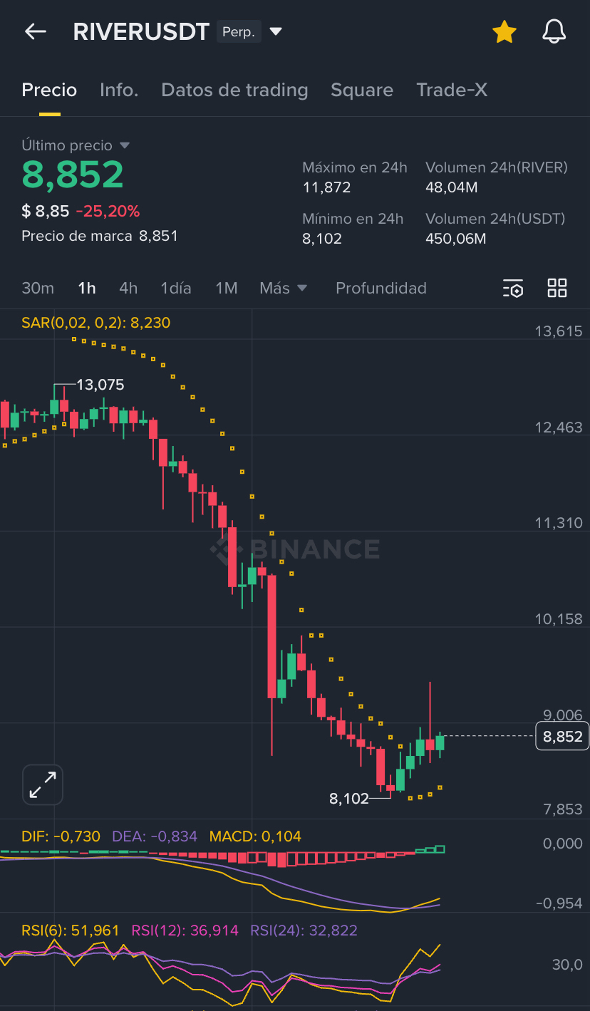 $RIVER se encuentra en un momento decisivo. Después de perder el soporte de los $12, ahora está probando el de $8. Si logra mantener y pasar con fuerza los $10,5 podría llevar el precio de RIVER hacia arriba. Por el contrario, si rompe los $8 con fuerza es probable que pruebe nuevos mínimos.