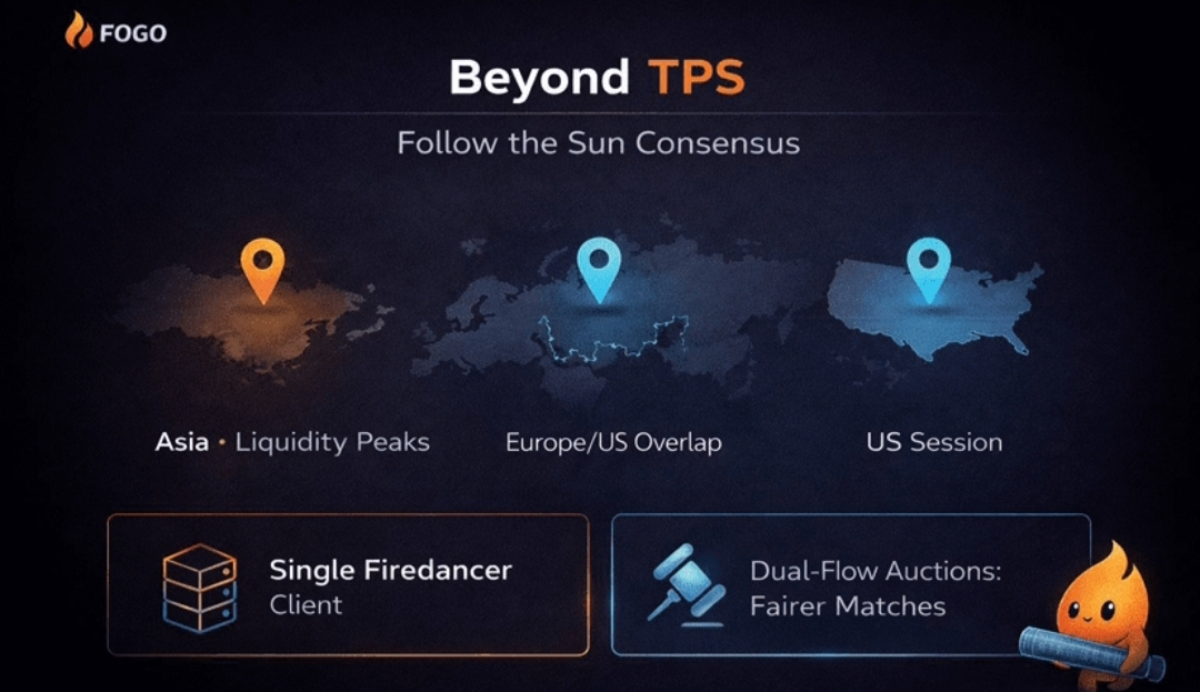 At the core of Fogo is its follow-the-sun consensus design. Instead of assuming a static validator set operating evenly around the clock, Fogo effectively aligns validator activity with global market hours. Validators in Asia, Europe, and the United States take prominence during their respective peak trading windows. The result is not just better performance, but better market responsiveness. Liquidity, order flow, and latency are optimized for real trading behavior, not theoretical benchmarks.