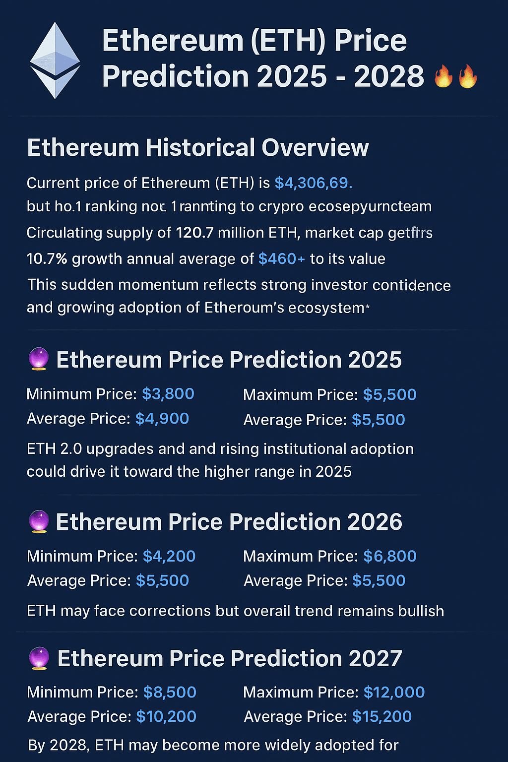 ✅ Conclusión: Ethereum sigue siendo uno de los activos más fuertes en el ecosistema cripto. Aunque se espera volatilidad a corto plazo, la perspectiva a largo plazo entre 2025–2028 sigue siendo muy alcista con un posible crecimiento de 3x–4x desde los niveles actuales.