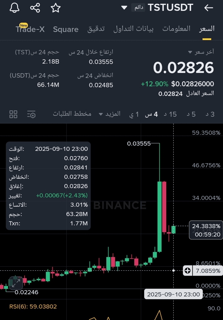 Actualmente se negocia a 0.02802 (+0.32%), $TST se mueve lateralmente en una zona de consolidación entre 0.03000 y 0.02600.