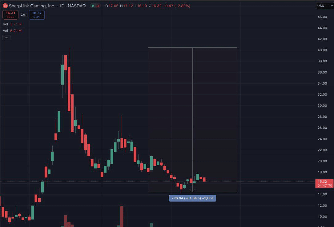 SharpLink, una empresa de gestión de tesorería centrada en Ethereum, vio su acción caer ligeramente después de anunciar otra ronda de recompra.