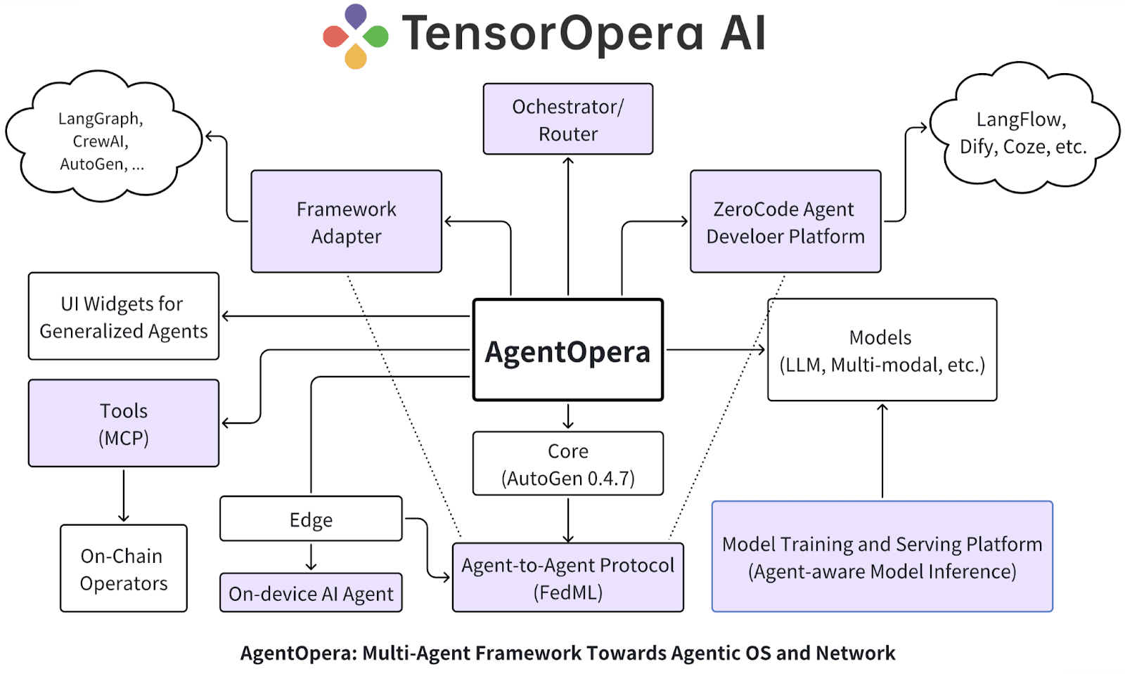 En marzo de 2025, TensorOpera se actualizó a una plataforma de pila completa orientada hacia Agentes de IA, con sus productos centrales cubriendo la App AgentOpera AI, el Marco y la Plataforma:
