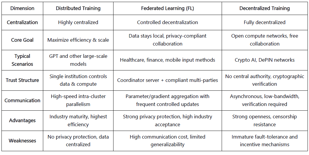 En nuestro informe de junio “El Santo Grial de Crypto AI: Exploración Fronteriza del Entrenamiento Descentralizado”, discutimos el Aprendizaje Federado—un paradigma de “descentralización controlada” posicionado entre el entrenamiento distribuido y el entrenamiento completamente descentralizado. Su principio fundamental es mantener los datos locales mientras se agregan parámetros de forma central, un diseño particularmente adecuado para industrias sensibles a la privacidad y con alta conformidad como la atención médica y las finanzas.