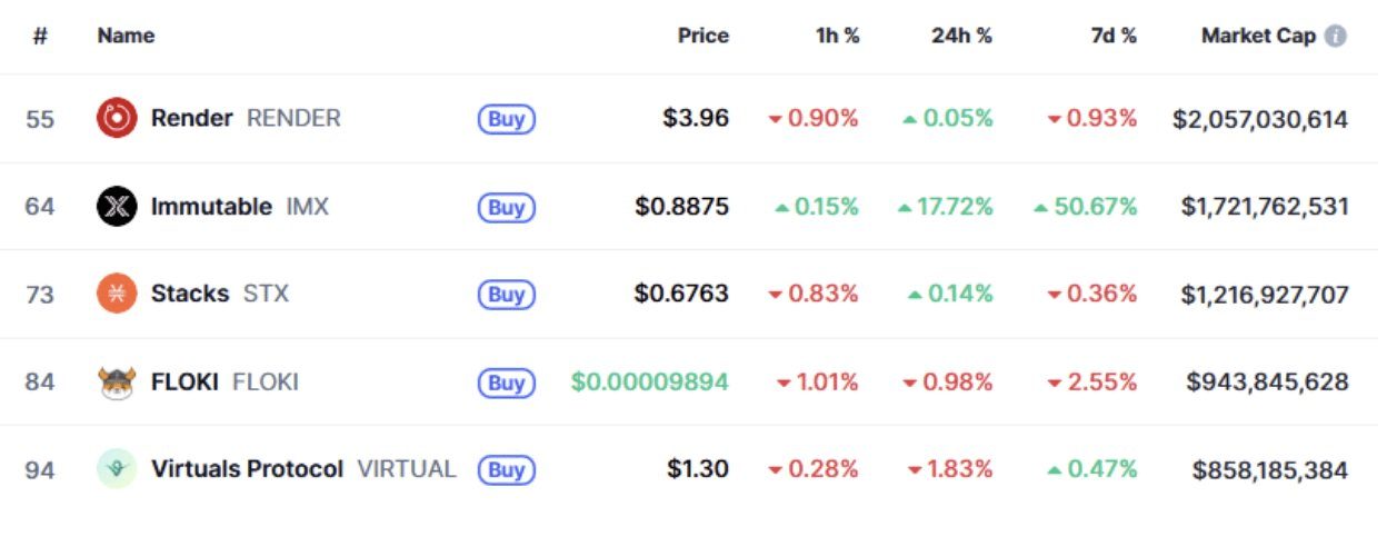 🔹 Inmutable (IMX): +50.73%