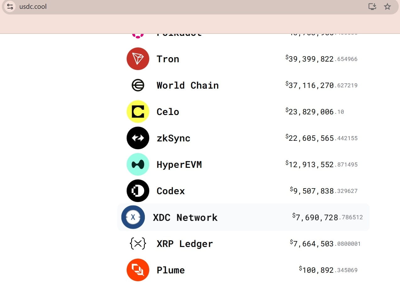 Justo una semana después del lanzamiento de USDC, XDC superó al XRP Ledger en impulso de adopción y relevancia.