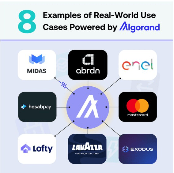 * Áp dụng Doanh nghiệp: Các đối tác lớn như Lavazza (theo dõi chuỗi cung ứng cà phê), Enel (mã hóa năng lượng tái tạo), và 62% cổ phiếu mã hóa đã được phát hành trên Algorand.