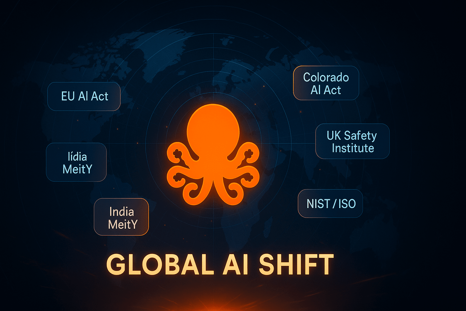 India ha señalado a través de su asesoría de MeitY en 2024 que las plataformas de IA deben cumplir ahora con los estándares de transparencia y responsabilidad del usuario. La exigencia de aprobación previa ha sido eliminada, y ahora la responsabilidad se ha trasladado directamente a las plataformas. Este cambio indica un entorno regulatorio amigable para la adopción, donde el gobierno quiere fomentar la industria, pero también está estableciendo nuevos estándares de responsabilidad. Junto con esto, el Marco de Gestión de Riesgos de IA de NIST y estándares internacionales como ISO/IEC 42001 se han incluido en la agenda de las juntas de las empresas. Esto significa que la identificación, medición y gestión de los riesgos asociados con la IA ya no son opcionales, sino necesarias.