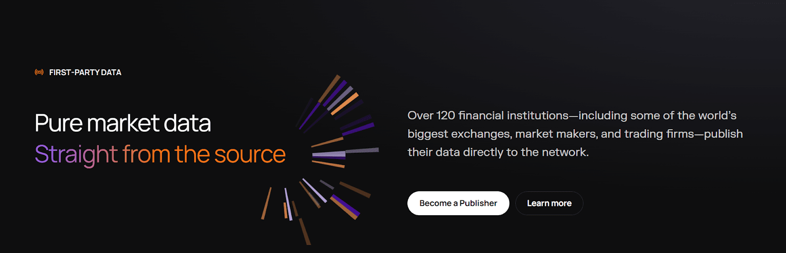 Pyth obtiene datos financieros directamente de las instituciones y los envía a la cadena en tiempo real.
