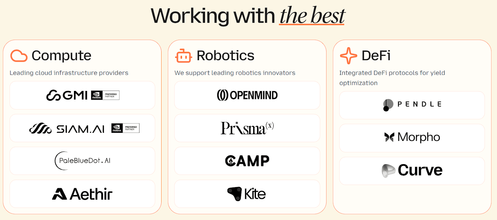 El ecosistema de GAIB está compuesto por tres partes: recursos de computación de GPU, empresas innovadoras en robótica y protocolos DeFi integrados, con el objetivo de formar un ciclo completo de "activos de capacidad reales → financiación → optimización DeFi".
