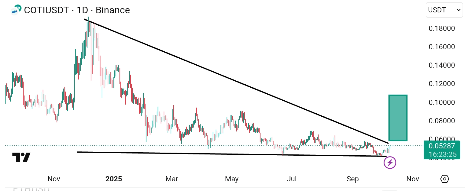 Mantenerse por encima de la zona base mantiene la configuración fuerte — y una vez que esa vela de ruptura aterrice, COTI podría acelerar rápido a medida que se presionen las posiciones cortas 📈.