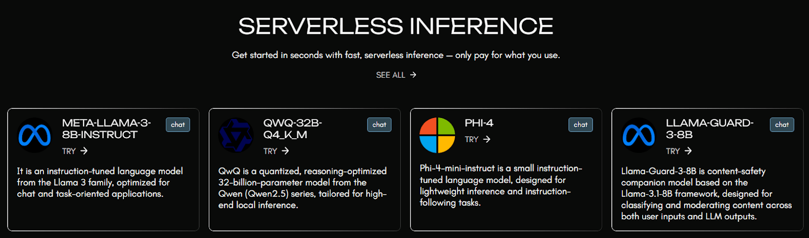Cysic AI proporciona servicios de inferencia de pago por uso y acceso instantáneo, permitiendo a los usuarios llamar a grandes modelos de lenguaje a través de API sin gestionar o mantener clústeres de computación.