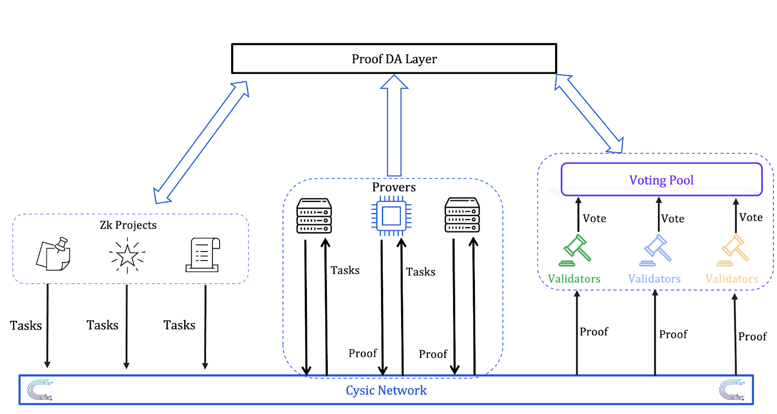 Flujo de trabajo: los proyectos ZK publican tareas de prueba a través de contratos inteligentes → Proveedores descentralizados compiten para generar pruebas → Verificadores realizan validación multiparte → los resultados se liquidan a través de contratos en cadena.