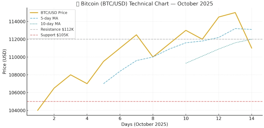 💹 Análisis Técnico de Bitcoin (a partir del 22 de octubre de 2025)
