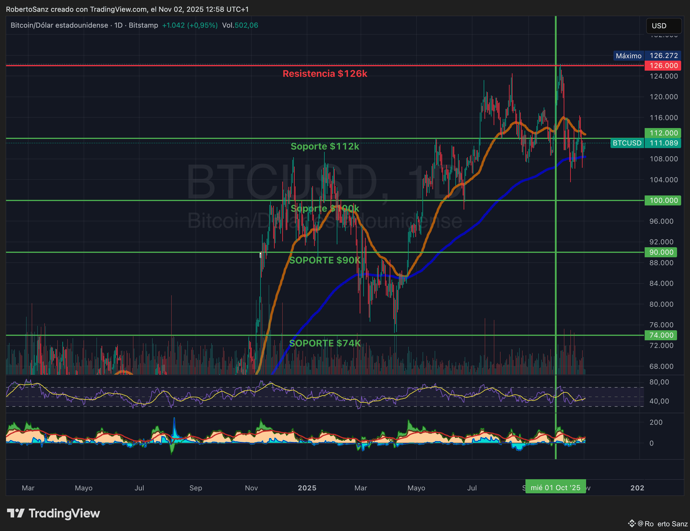Tanto $BTC como el Oro, están viviendo uno de sus mejores momentos. Bitcoin cotiza alrededor de los 111.000 dólares, después de unas semanas a la baja, mientras que el oro subió hasta los 4.300 dólares por onza, ambos en precios históricos, bajando a los actuales $4.000.