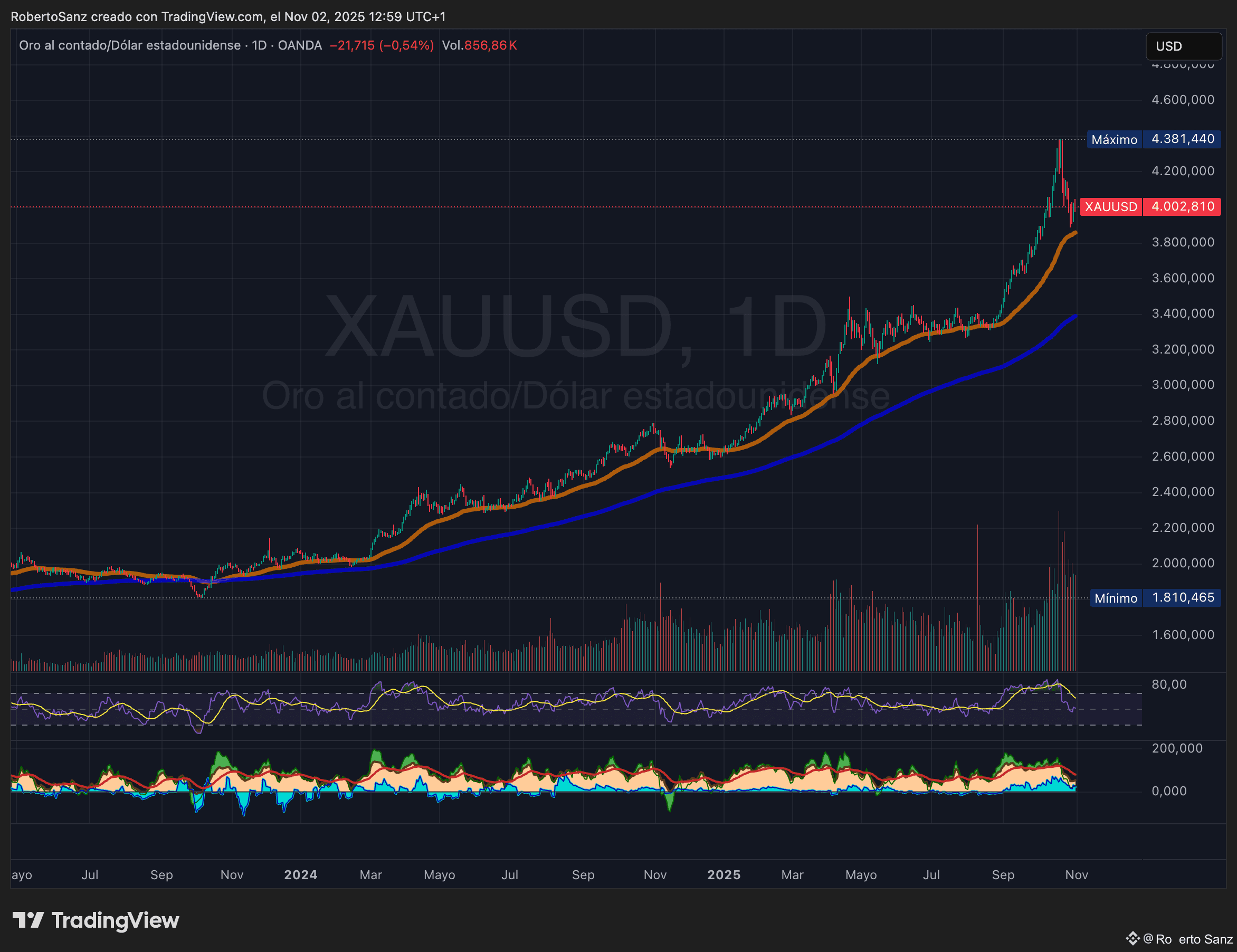 En Octubre de 2025 ronda los 4.300 dólares por onza, impulsado por la demanda de bancos centrales y fondos que buscan estabilidad.