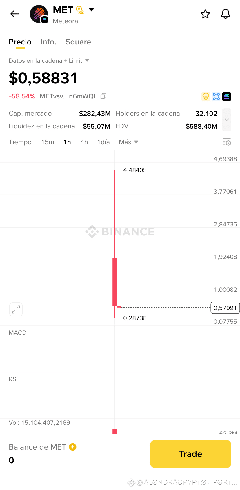 Sin embargo, lo que llama la atención es la fuerte caída del -58.54% que se observa en el gráfico de una hora. ¿Por qué está bajando de precio? Esta fuerte volatilidad (cambios bruscos de precio) es completamente normal y anticipada en una moneda que acaba de pasar por su TGE (Evento de Generación de Tokens), es decir, su lanzamiento oficial al público. Cuando una moneda nueva se lanza y se distribuye a los primeros usuarios (a menudo a través de un airdrop, que es un reparto de tokens gratuitos), muchos de esos primeros destinatarios venden inmediatamente para asegurar ganancias rápidas.
