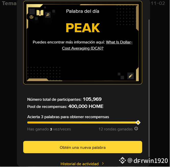 Desbloquea recompensas del token $HOME como parte del nuevo lanzamiento (WOTD) de Binance de esta semana que va del 27-10-2025 al 02-11-2025 el tema es DCA (promedio del costo en dolares)