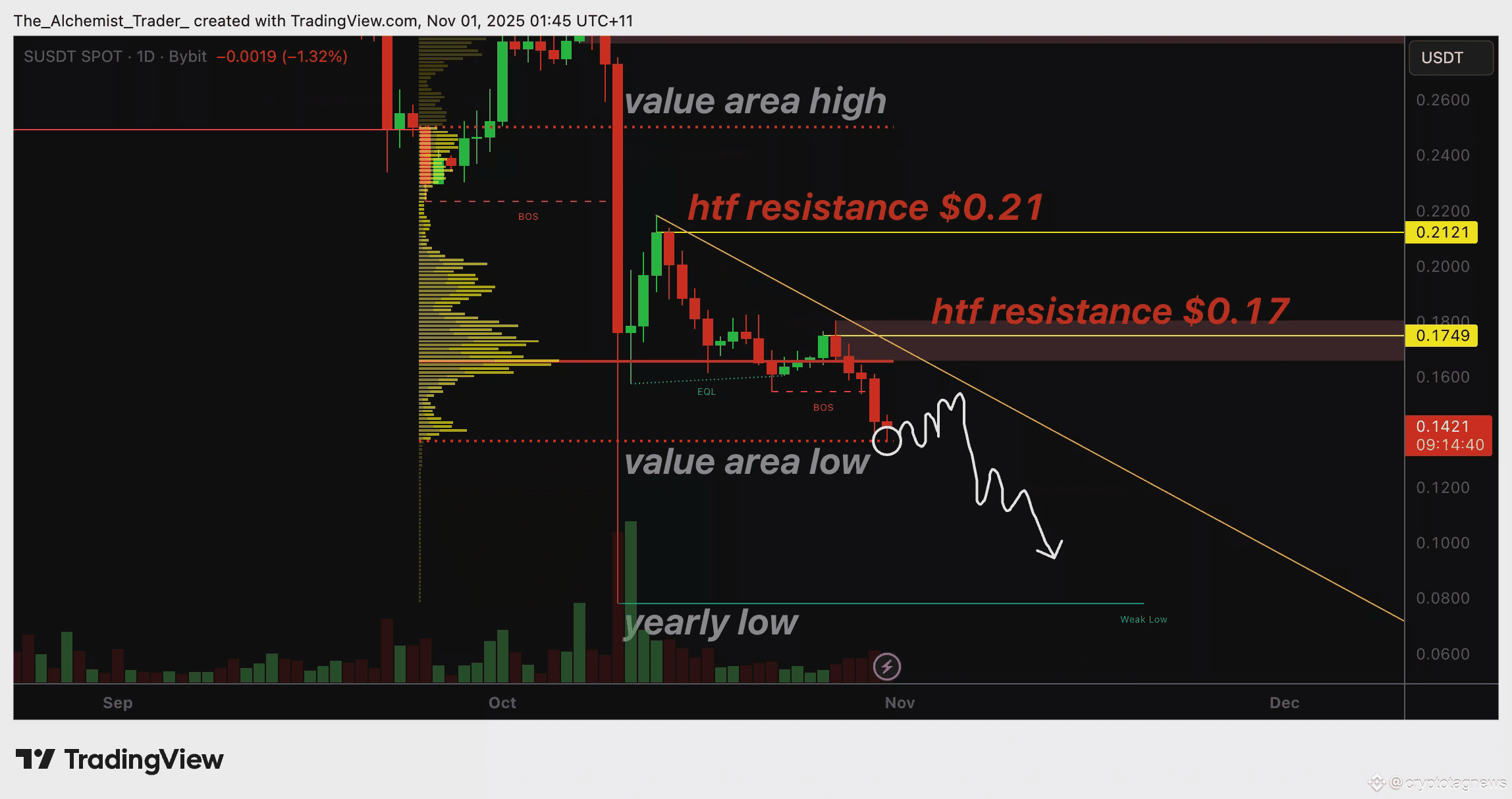 If the low of the value range does not hold, the Sonic token could extend its correction to test the unused annual low, where a temporary recovery or accumulation phase could occur. Conversely, if the price stabilizes above this support and volume begins to recover, a short-term consolidation range could develop between the $0.17 resistance and current support before a significant reversal occurs.$SONIC