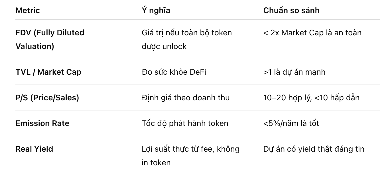 📈 3️⃣ Indicadores de valoración de tokens modernos (estándar 2025).