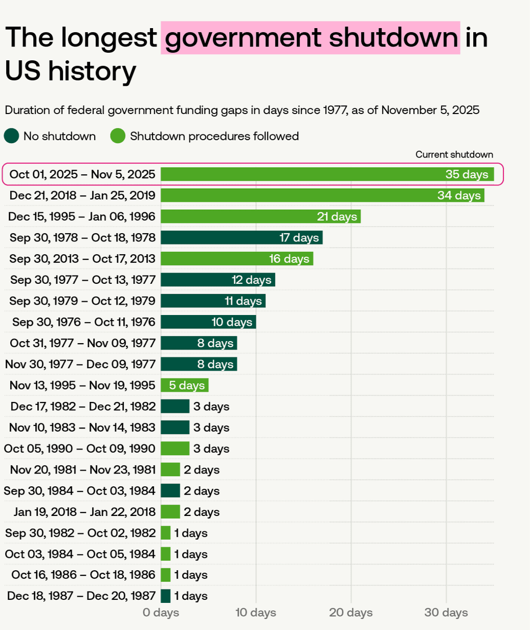 La duración importa: un cierre corto aún puede tener repercusiones, pero uno prolongado puede dañar el crecimiento económico, la confianza de los inversores/empresas y la confianza pública.