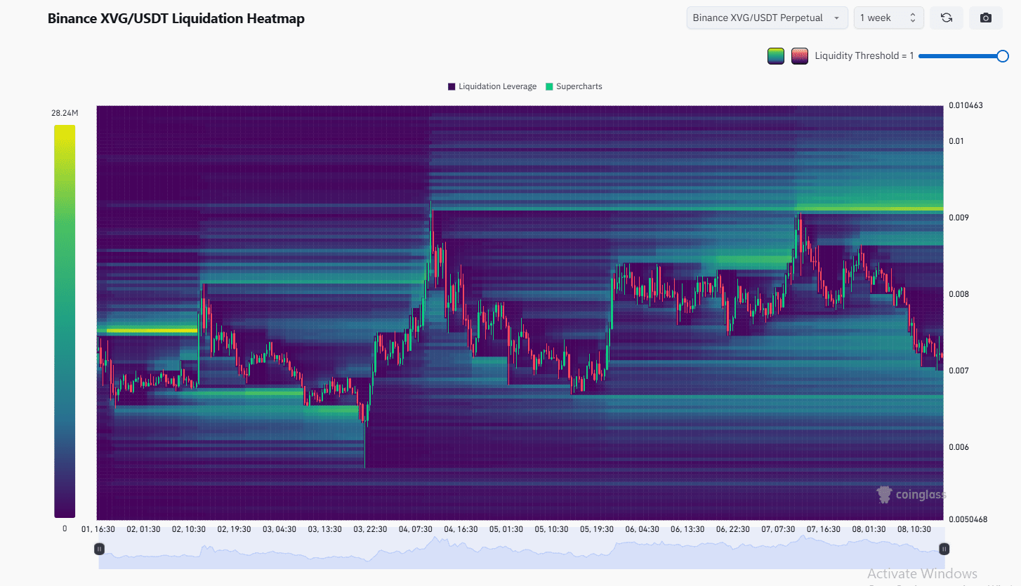 el mercado siempre irá por liquidez. si eres nuevo y no sabes cómo entender dónde está la liquidez, puedes verlo en el Mapa de Liquidación de Binance ETH/USDT. en la imagen puedes ver que XVG tiene liquidez en la zona 0.0093155.