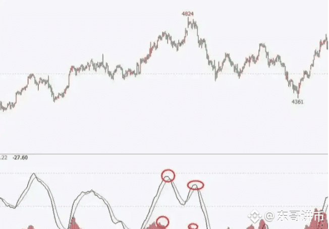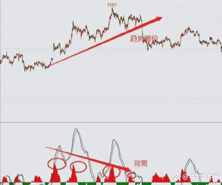 背离,是动能衰竭的信号。有效的背离指的是双线和量能柱同时背离。