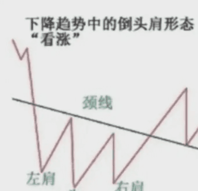 El gráfico del patrón cabeza-hombros a veces se invierte, el patrón cabeza-hombros invertido generalmente aparece en una tendencia a la baja. Es importante notar el volumen en el patrón cabeza-hombros invertido.