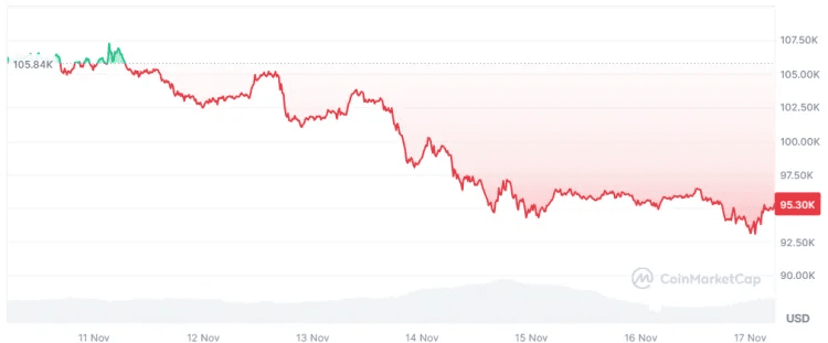 Los comentarios llegaron en un momento bastante sensible. Bitcoin cayó recientemente por debajo de $99,000, extendiendo una caída de más del 20% desde el máximo histórico cercano a $125,000 que se alcanzó a principios de octubre. El colapso repentino del 10 de octubre borró decenas de miles de millones del mercado y sacudió seriamente la confianza de los inversores en las acciones expuestas a cripto.